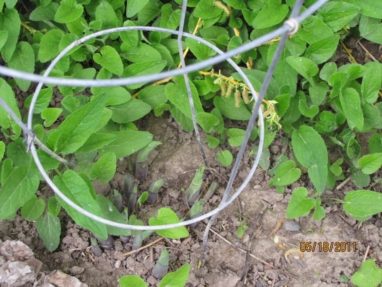 Hosta's starting to come through the ground - we have 5 darling little grandson's under 3, so I put tomato cages around them till they get big enough to see so their leaves don't get scrunched.